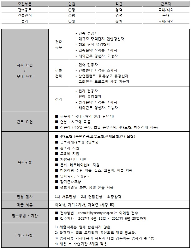 건축 / 설비 경력사원 모집