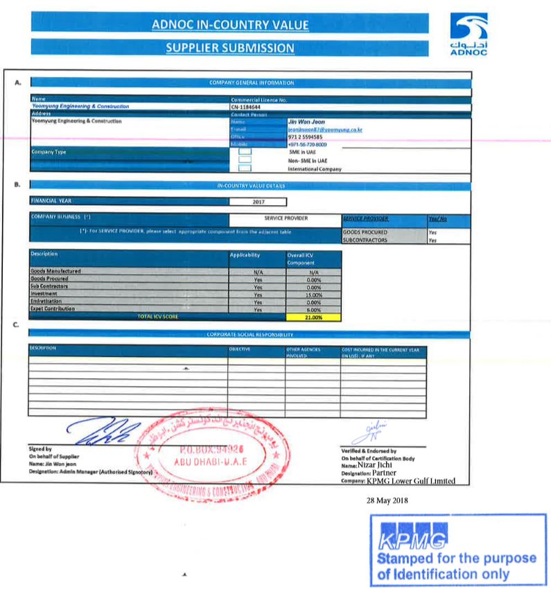| UAE_ADNOC IN-COUNTRY VALUE(ICV) 취득 |
